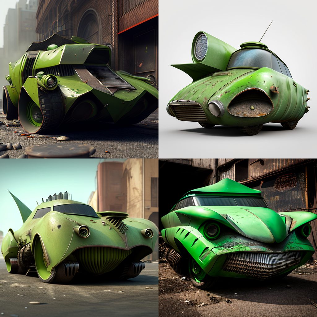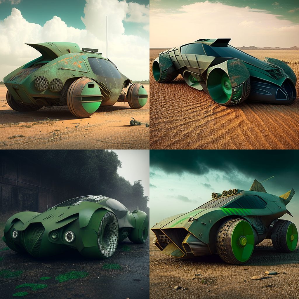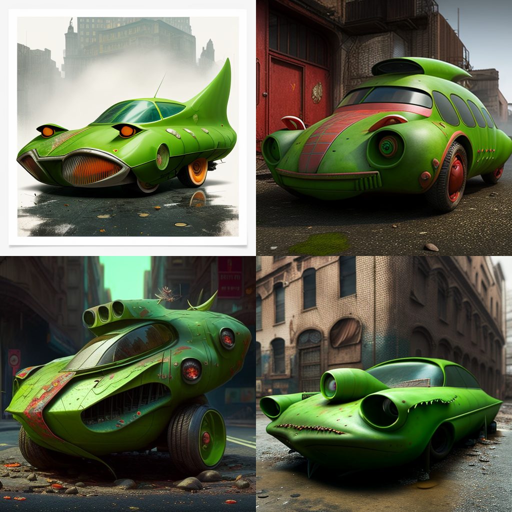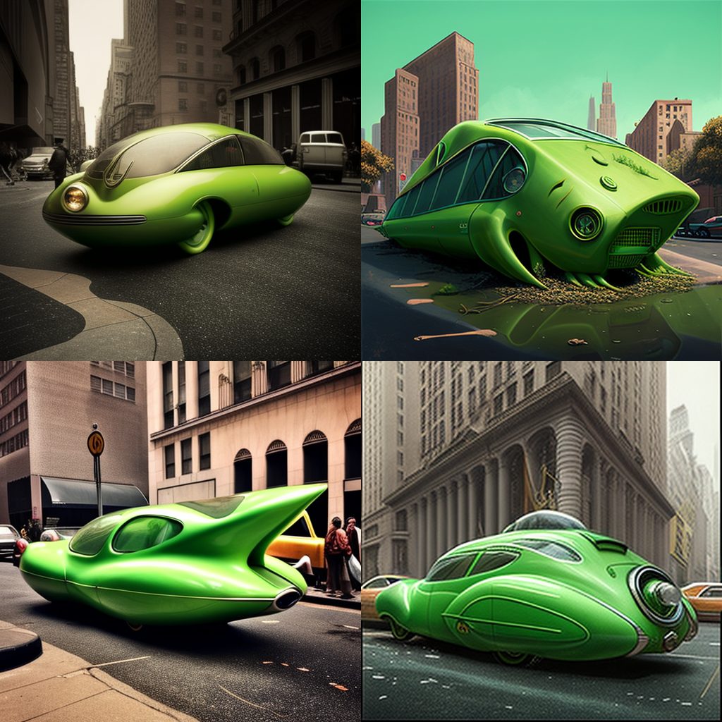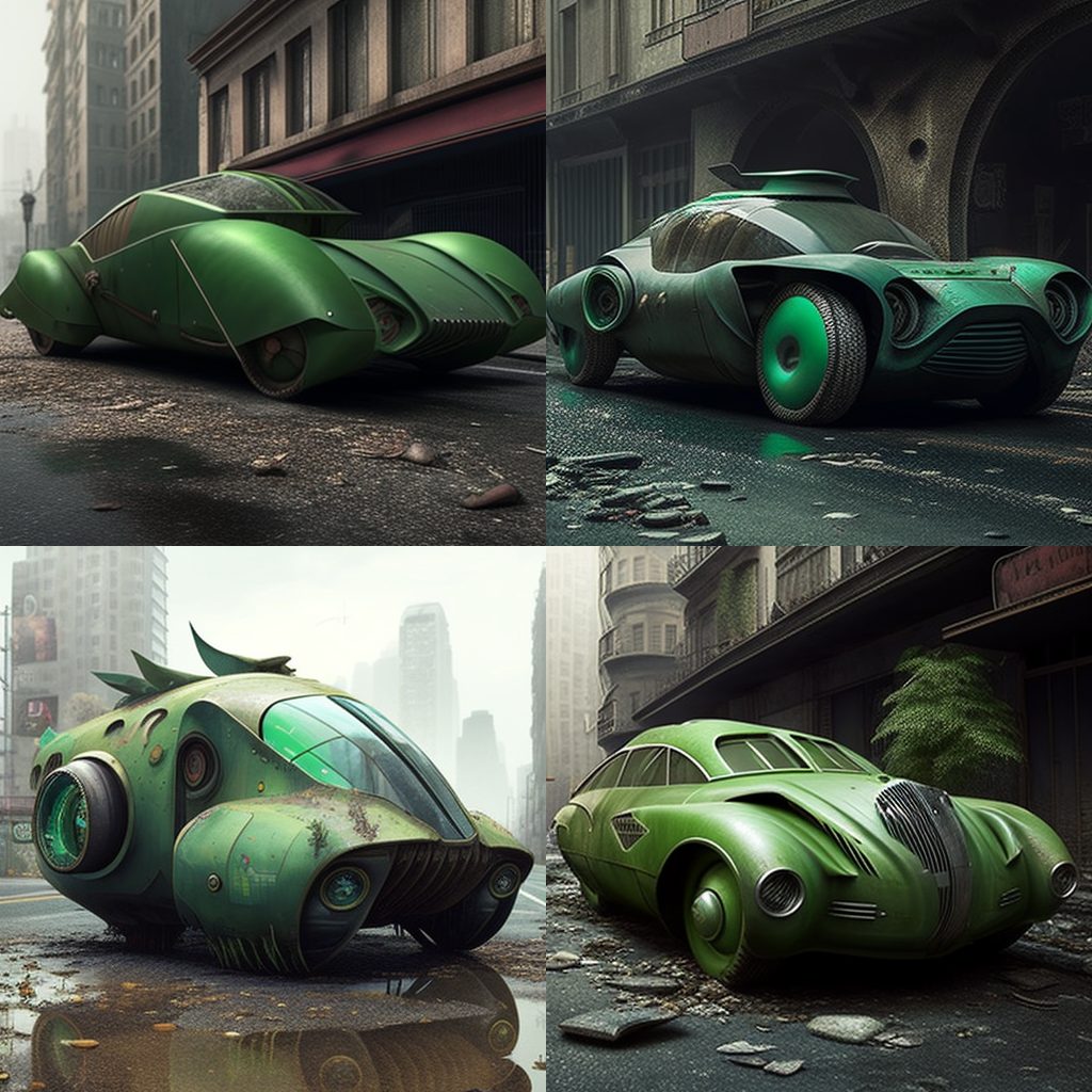 BONUS: Here’s a photo gallery of AJ’s attempts to create Eve’s Pea Green Car (along with other models) on MidJourney.com: