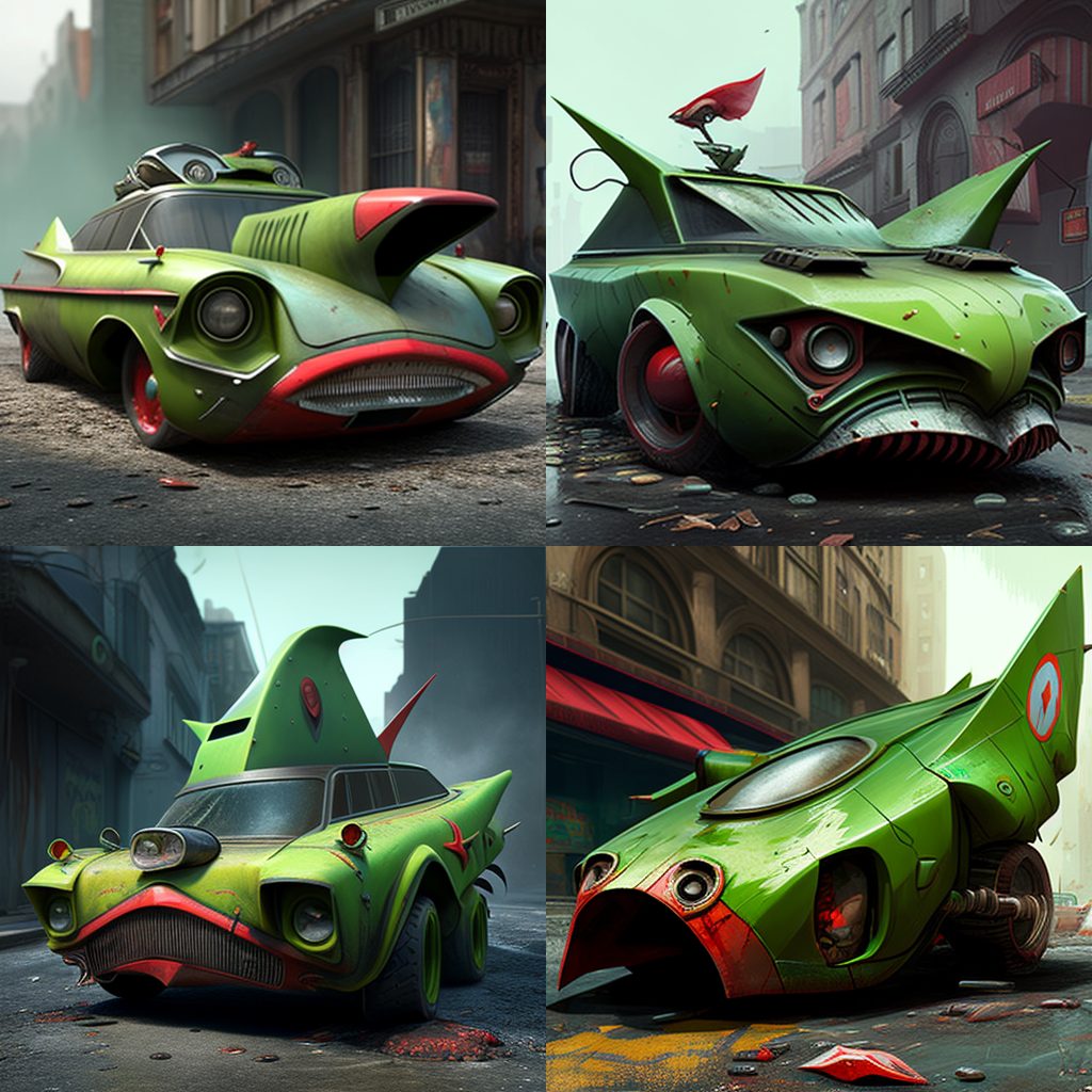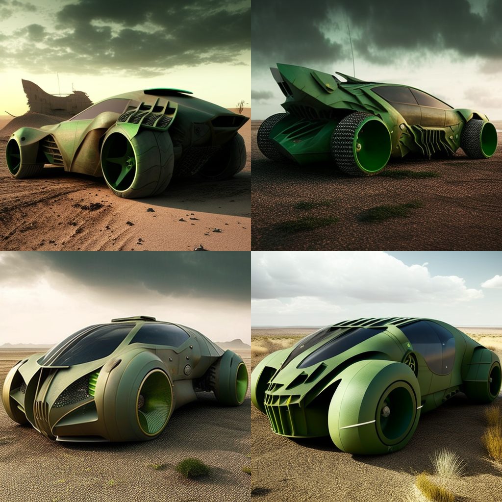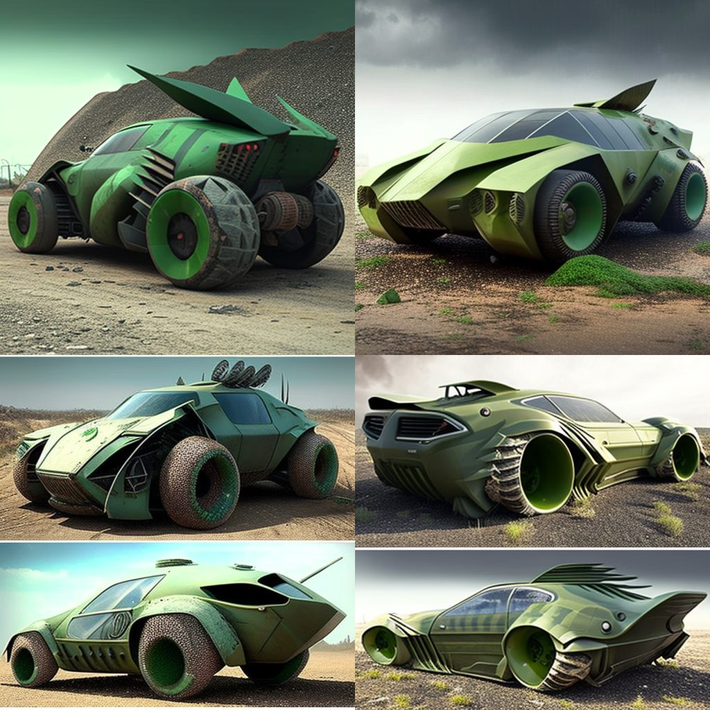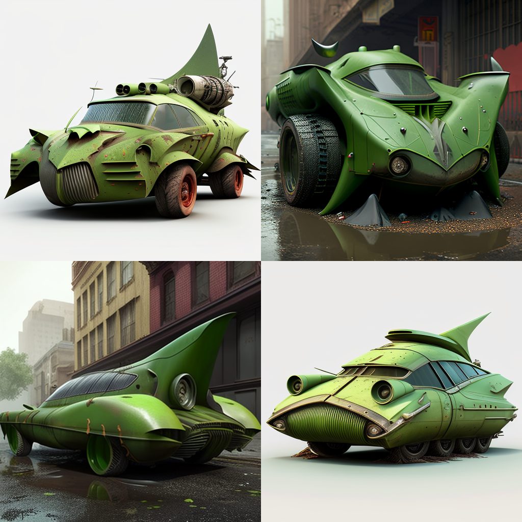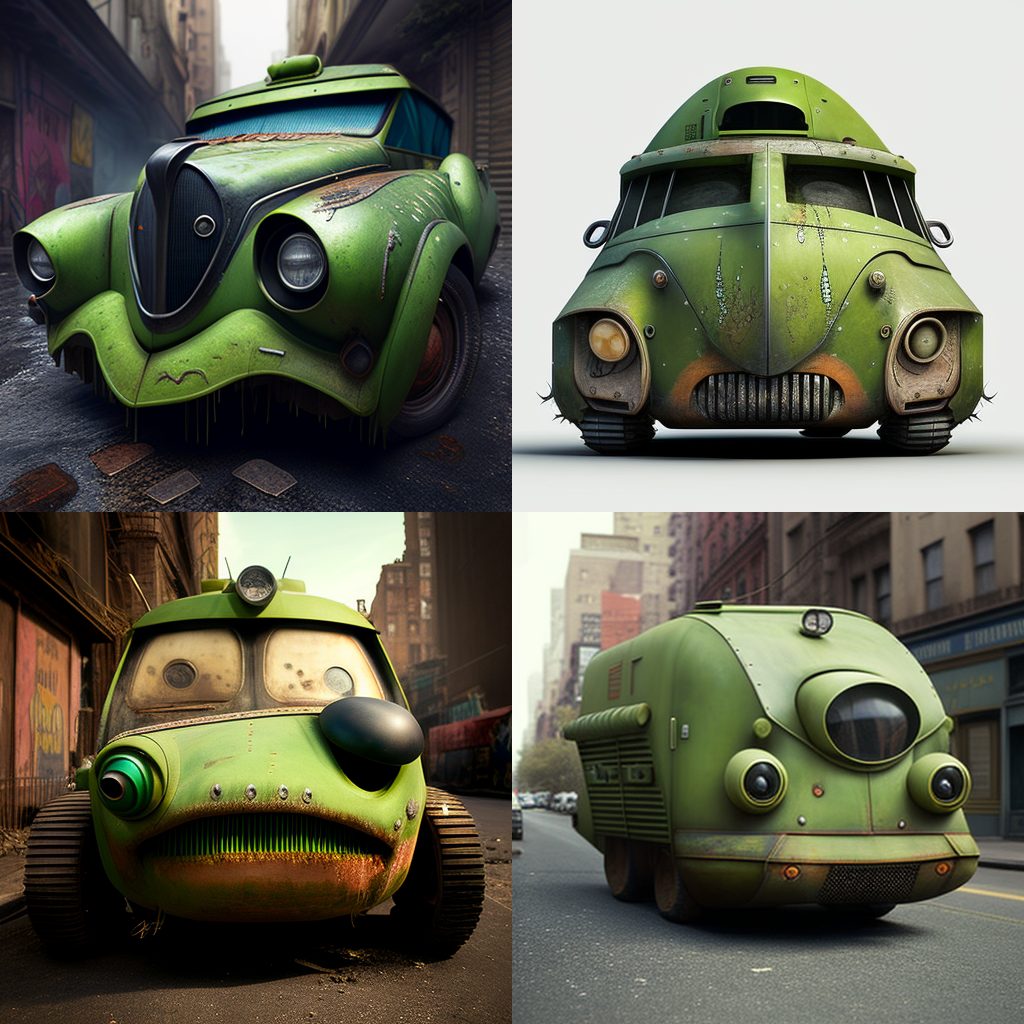 BONUS: Here’s a photo gallery of AJ’s attempts to create Eve’s Pea Green Car (along with other models) on MidJourney.com: